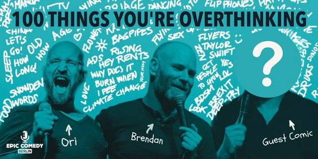Back to All Events 100 Things YOU Are Overthinking Sunday, December 21, 2025 8:00 PM 10:00 PM House Of Music 99 Revaler Straße Berlin, BE, 10245 Germany (map) Google Calendar ICS Overthinking It? Let Us Help. A show where you put any thought you're overthinking onto anonymous slips of paper and watch pro comics turn it into live standup! More Info / Reserve seats